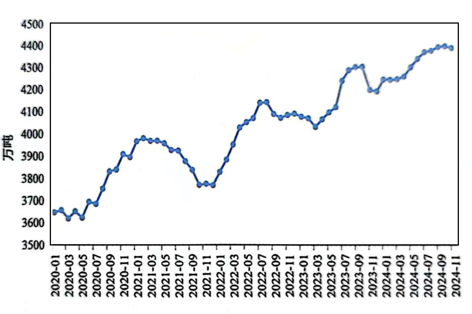 2024年11月,中國電解鋁企業(yè)增減產(chǎn)并存。減產(chǎn)方面,河南、廣西、貴州、四川等地區(qū)的部分鋁廠由于環(huán)保、生產(chǎn)經(jīng)營(yíng)壓力大等因素而宣布檢修、停槽或放緩復(fù)產(chǎn)計(jì)劃:新投方面,11月初貴州地區(qū)雙元鋁業(yè)二期項(xiàng)目鋁水下線,預(yù)計(jì)12月底全部投產(chǎn),新疆信發(fā)、寧夏寧創(chuàng)也在持續(xù)投產(chǎn)中。11月國內(nèi)電解鋁建成產(chǎn)能4462萬噸/年,運(yùn)行產(chǎn)能4374萬噸/年,較上月增長(zhǎng)11萬噸/年。11月份產(chǎn)量為360.6萬噸,環(huán)比下降3.4%,同比增長(zhǎng)4.5%,日均產(chǎn)量12.02萬噸,環(huán)比小幅下降0.2%。