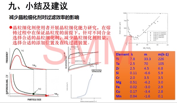 據(jù)丁總調(diào)查顯示,常用細(xì)化劑會(huì)對(duì)CFF過濾器的過濾性能產(chǎn)生負(fù)面影響,并隨較高的添加速率而惡化,并顯示晶粒細(xì)化劑種類對(duì)過濾性能影響不同。據(jù)業(yè)內(nèi)相關(guān)試驗(yàn)調(diào)查,鋁鈦碳或因無TiB2,從而減少對(duì)CFF過濾器的吸附、堵塞,會(huì)大大降低細(xì)化劑對(duì)過濾器性能的影響。